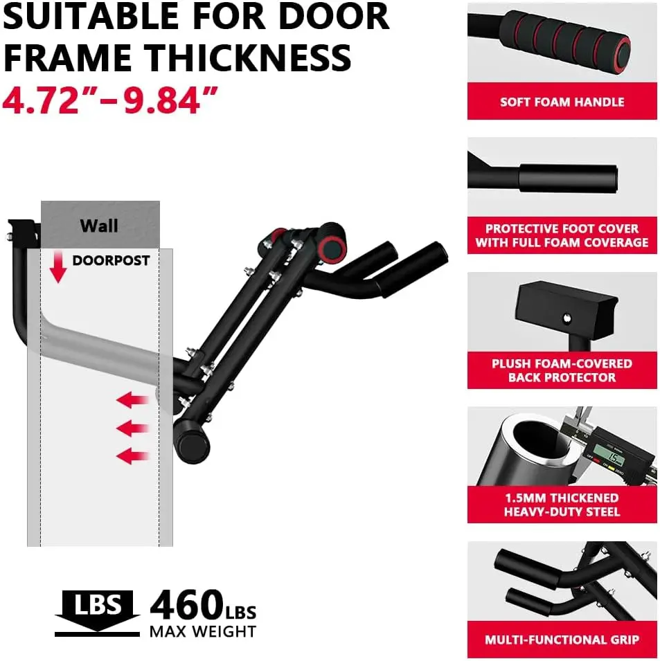 2025 Heavy-Duty Multi-Grip Pull-Up Bar for Doorway - 460 Lbs Capacity