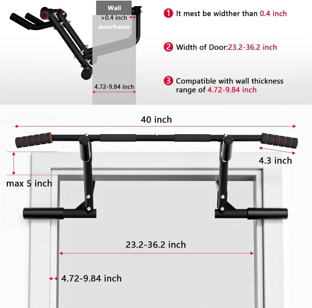 Transform your home into a personal fitness sanctuary with our revolutionary 2025 upgraded multi-grip pull-up bar! Imagine achieving your fitness goals without stepping outside—this versatile equipment brings professional-grade workouts right to your doorway. 🌟 **6-Grip System for Targeted Muscle Training** Experience unparalleled versatility with six strategically placed handles, including two new narrow vertical grips. Whether you're focusing on biceps, back, or core muscles, this design ensures every workout targets exactly what you need. The ergonomic angled ends protect your wrists while providing superior grip support, making each exercise comfortable and effective. 🏠 **Perfect Fit for Virtually Any Door** Worried about compatibility? Don't be! Our pull-up bar accommodates door widths from 23" to 36" and depths of 4.72" to 9.84", fitting almost every standard doorway. The intelligent design leaves central space so you can walk through normally—no head-bumping worries! Plus, the full-coverage foam protector ensures your door frame remains pristine without any marks. 💪 **Heavy-Duty Performance You Can Trust** Crafted from thickened steel, this bar supports up to 460 lbs, offering rock-solid stability for intense workouts. The soft, non-slip foam grips provide optimal comfort, even during sweaty sessions. Feel secure as it firmly fixes to your door frame—no disassembly needed after use, so you can focus on your fitness journey effortlessly. 🔥 **Multifunctional Fitness at Your Fingertips** Why clutter your space with multiple gadgets? This all-in-one solution replaces other equipment, enabling pull-ups, push-ups, sit-ups, and more to work your upper body and core muscles. Turn your home or office into a gym instantly—achieve quick, effective workouts whenever inspiration strikes. 🎯 **Ideal for Busy Lifestyles** Perfect for fitness enthusiasts, busy professionals, parents, or anyone seeking convenience without compromising results. Save time and money by eliminating gym memberships—unlock endless possibilities with this compact, powerful tool. Ready to elevate your fitness routine? Click 'Add to Cart' now and start building strength in the comfort of your home!